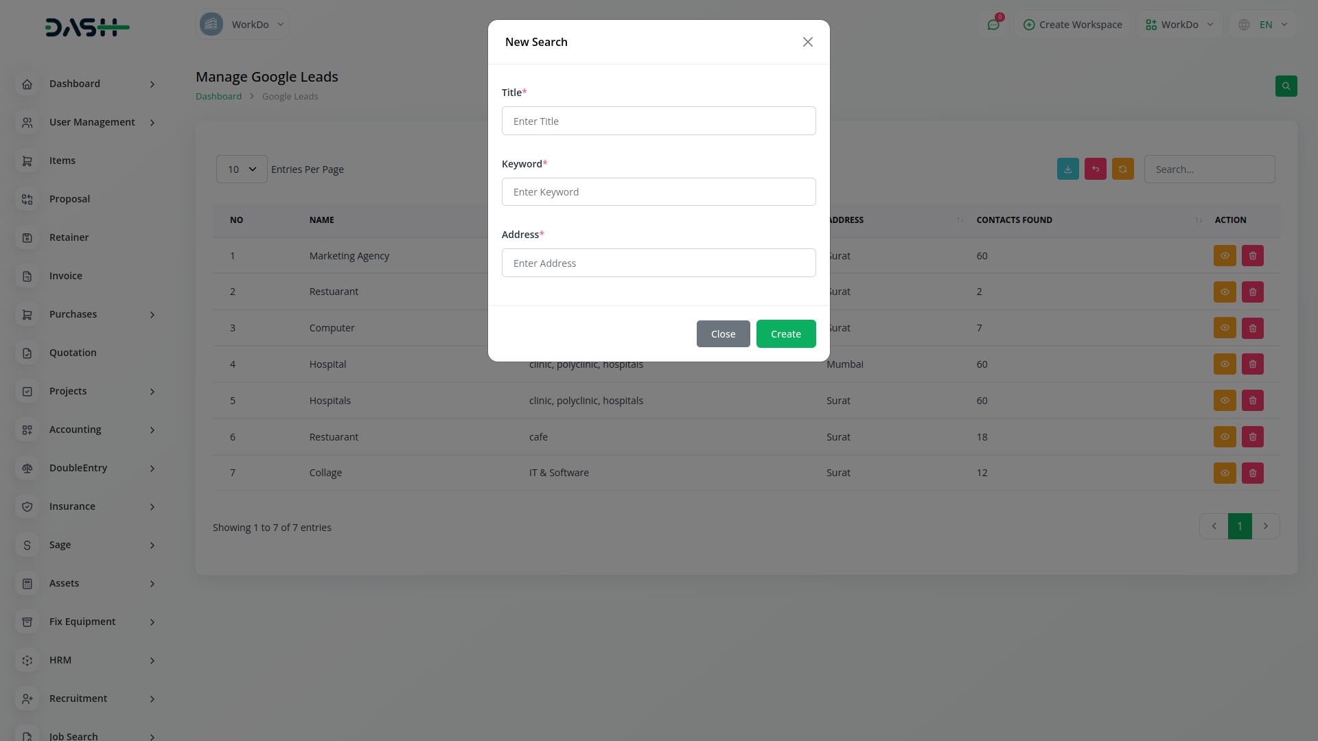 Simplify lead handling with Dash SaaS's Google Leads Module. Enter API keys, set search parameters, and seamlessly integrate leads into pipelines for efficient management.