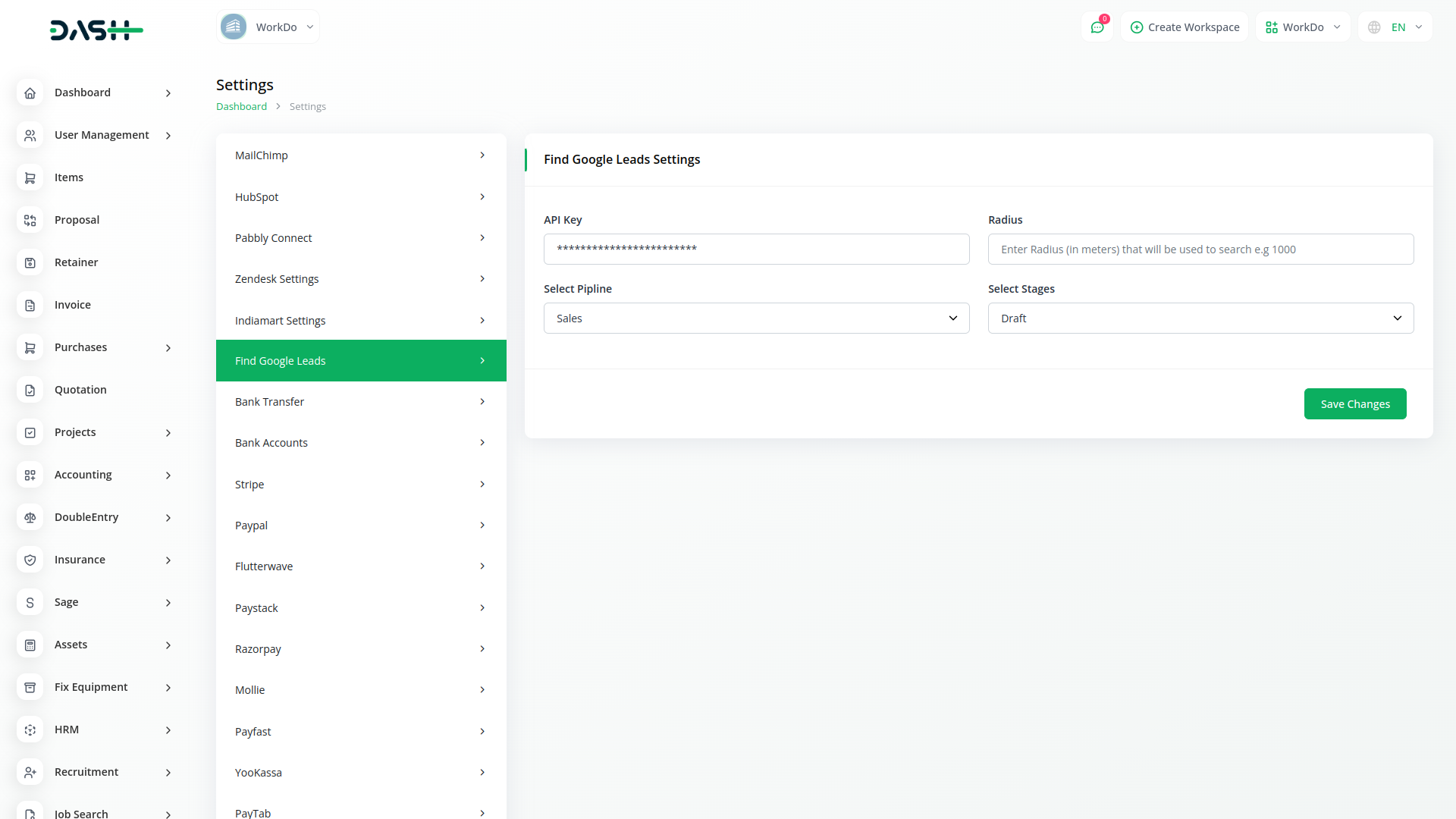 With our integration, users can seamlessly manage leads by inputting their Google API key and setting the desired search radius. This automation feature saves valuable time and ensures that users can quickly identify leads within their target geographic area. By centralizing lead management within Dash SaaS, users can access and process Google leads alongside other lead sources, creating a unified and efficient workflow.