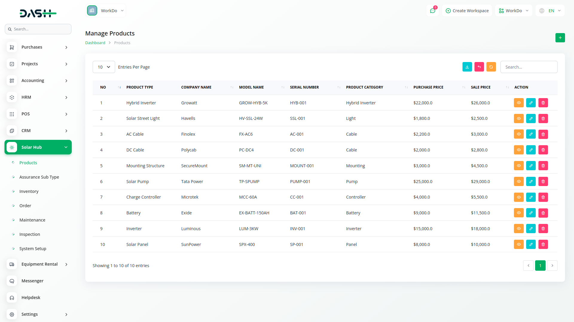 The Solar Hub Add-On empowers businesses to efficiently monitor, analuze, and manage their solar engergy systems through a unified, intuitive dashboard.